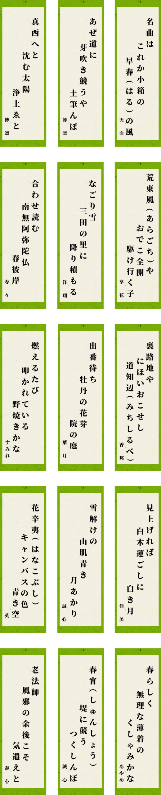 3月 俳句クラブ 2024 5/13 俳句クラブ 2024年5月13日 3月の俳句クラブです。作品をご紹介いたします。 俳句クラブ 2024 お知り合いにも知らせましょう URLをコピーしました! インタビュー 4月 俳句クラブ