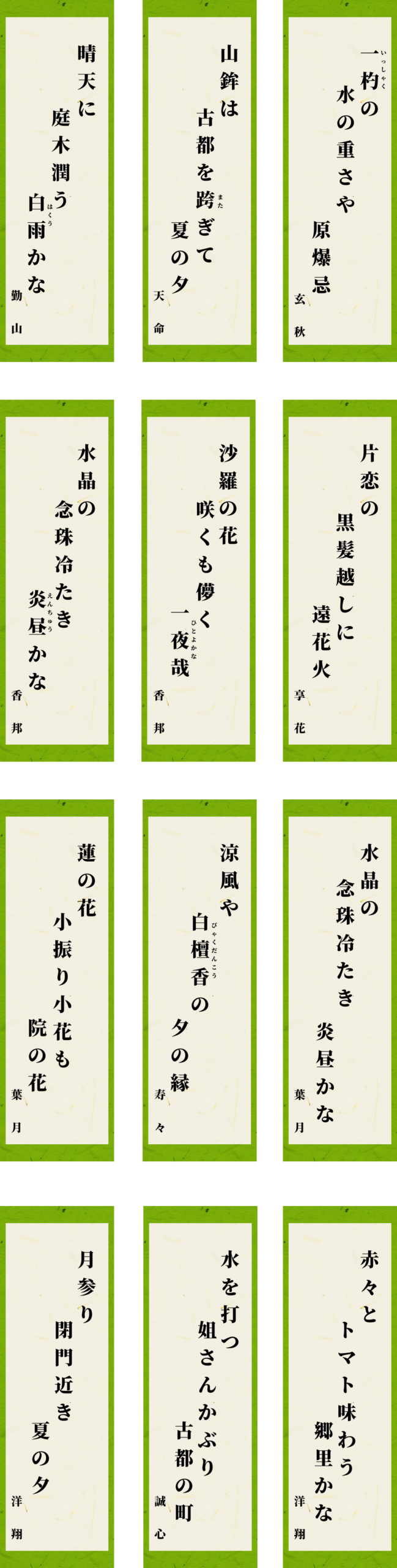 7月 俳句クラブ 2025 8/19 俳句クラブ 2025年8月19日 7月の俳句クラブです。作品をご紹介いたします。 俳句クラブ 2025 お知り合いにも知らせましょう URLをコピーしました! 令和7年夏の挨拶 今月のちょっといい話 172 〜堺支坊編〜