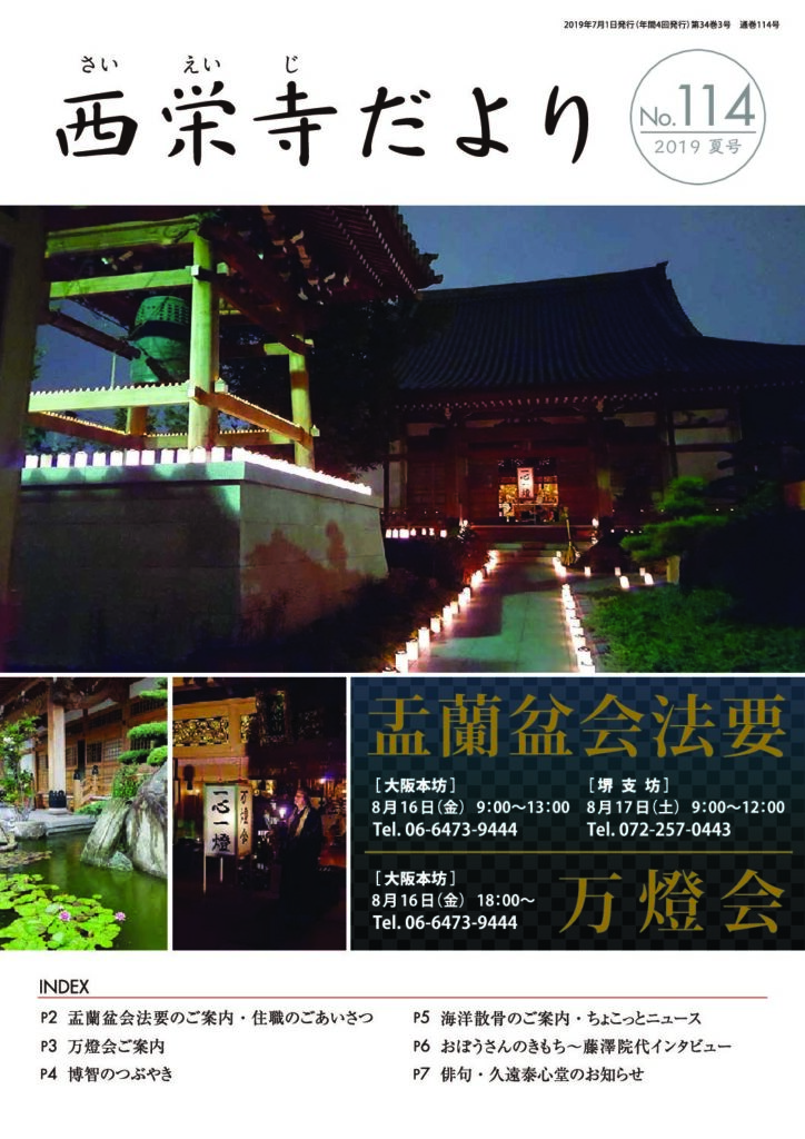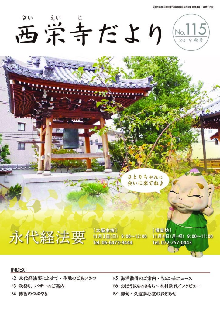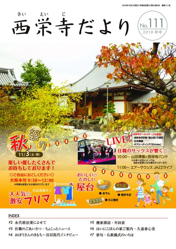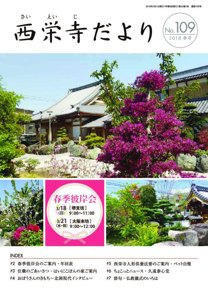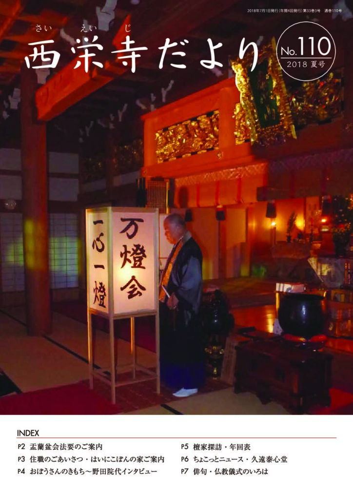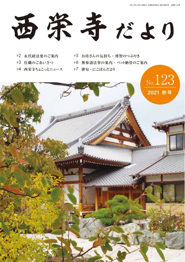 西栄寺では、年数回のペースで西栄寺だよりを刊行しています。
