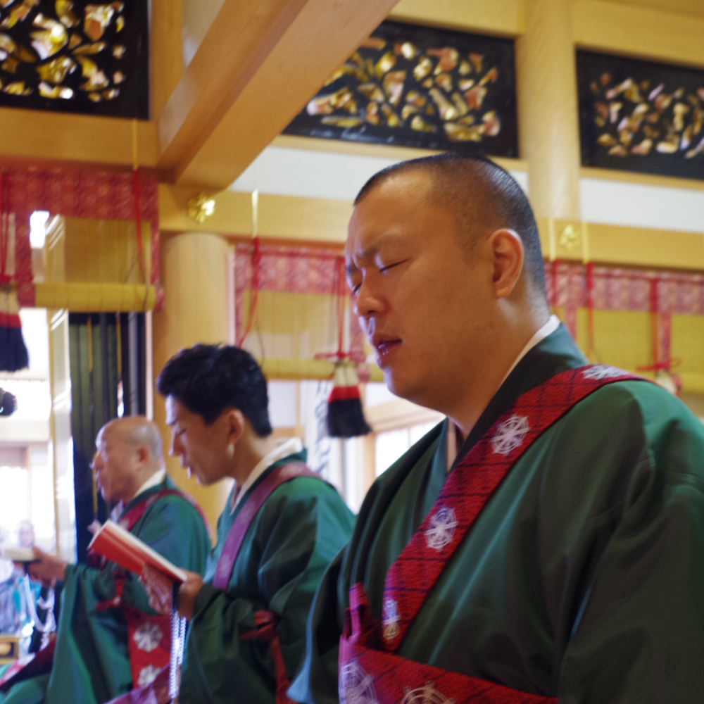 A. 日々のお勤めはもちろんですが、それ以外で申し上げますとまずは白木のお位牌や過去帳の筆耕を鶴田院代とともに務めさせて頂いております。また海洋散骨であったり無参詣法事(主にDVDやYouTube、ZOOM等を用いた御法事)の担当でもあります。