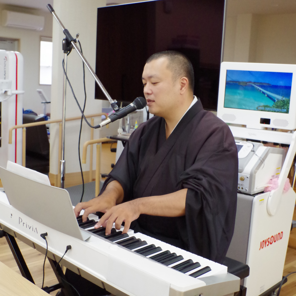 A. 吉田僧括の提案で始まったお遊び程度のものだったのですが、気が付けば様々な施設様や団体様から演奏依頼を頂くまでになって参りました。お寺の各種行事でも演奏させていただく機会も多いですね。