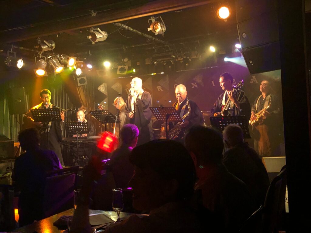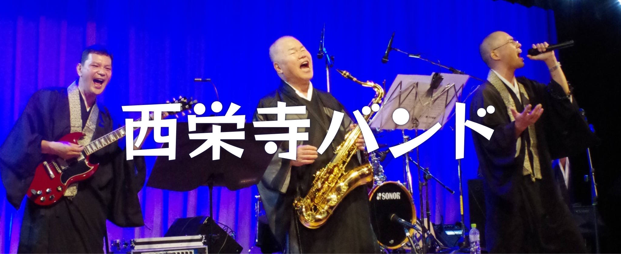 西栄寺バンドは西栄寺に勤めるお坊さん8名によるバンドです。昔の歌謡曲を中心に演歌、洋楽、アニメ主題歌からオリジナルの楽曲まで幅広く演奏しています。お寺のイベントや介護施設でのボランティア等、積極的に活動しております。演奏依頼も随時受付中です。技術的にはまだまだ拙い我々ですが、音楽を通して皆さんと楽しい時間を過ごしたいという想いだけは誰にも負けません!是非一緒に歌って笑って盛りあがりましょう🎵